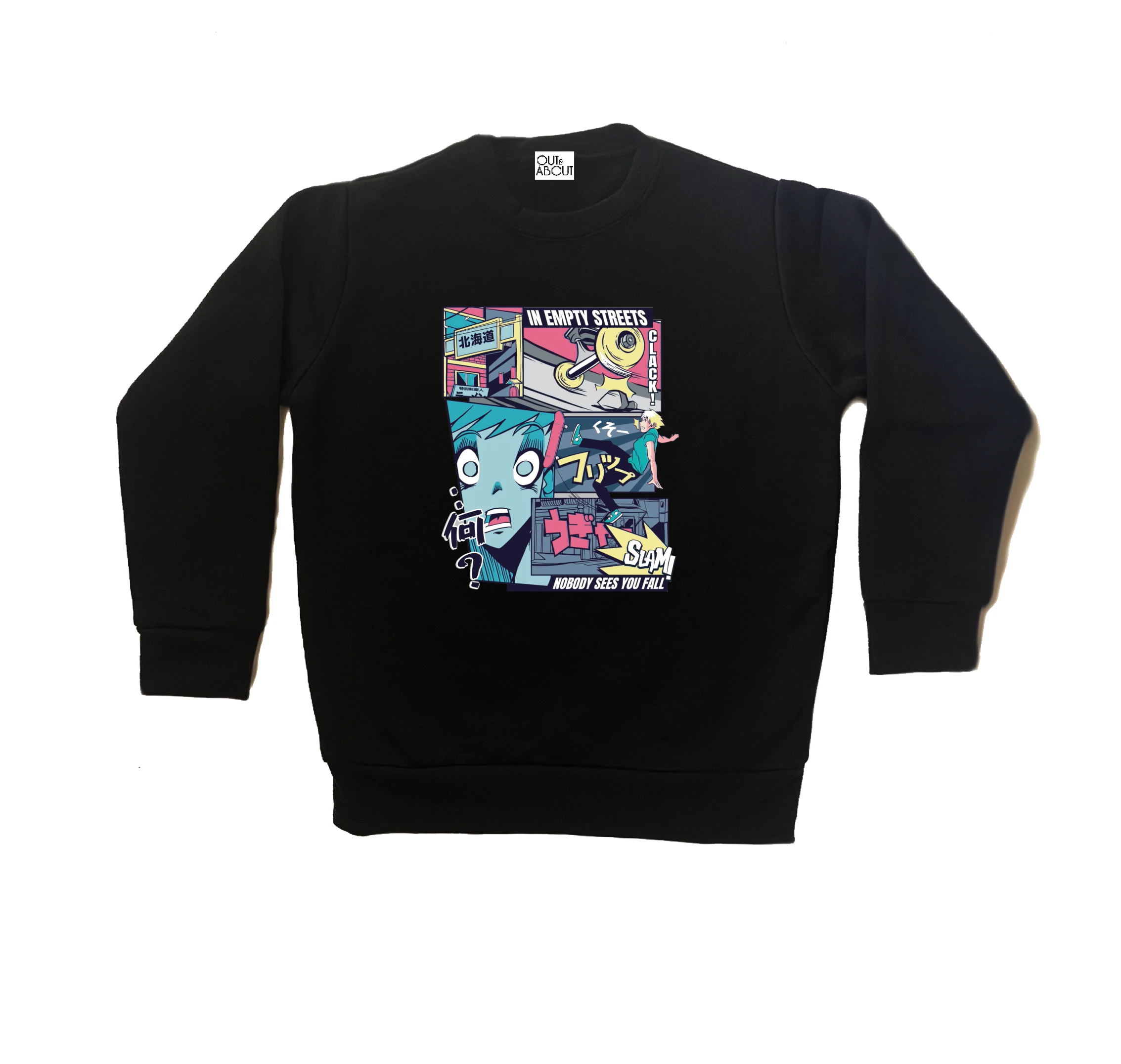 חולצת בייסיק ארוך 100% כותנה קומיקס יפני ברחוב
