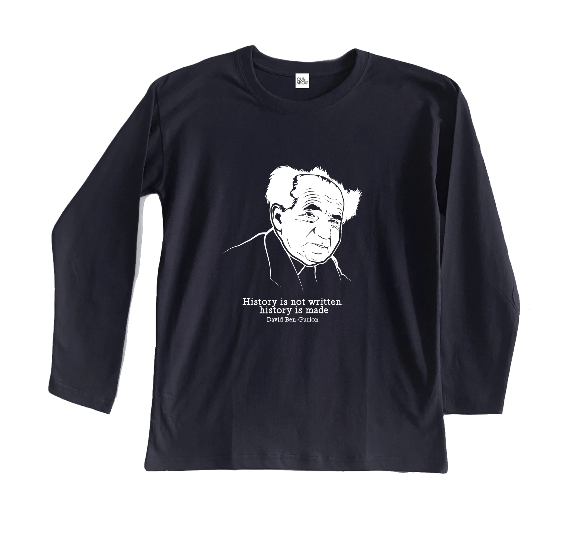 חולצת בייסיק ארוך 100% כותנה אומנות מקורית של שלום עליכם מסדרת גיבורי וגיבורות הציונות