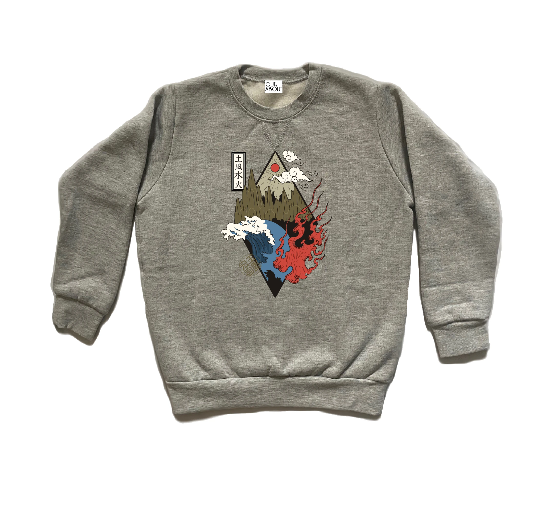 בייסיק טי קצרה מבד 100% כותנה גלים בסגנון יפני