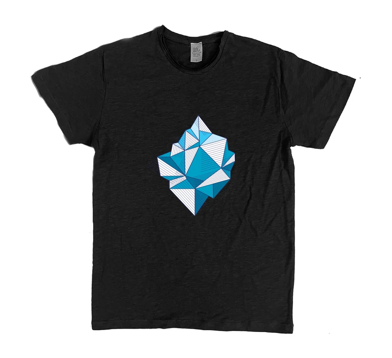 תיאור על ידי בינה מלאכותית: ההדפס 'קרחון' מציג עיצוב מינימליסטי של קרח, בגווני כחול שאפילו נראים קר, חד ומרשימים. הסגנון הנקי והאבסטרקטי מתאים במיוחד להדפסה על חולצות ומעניק מראה מודרני ומעניין.
