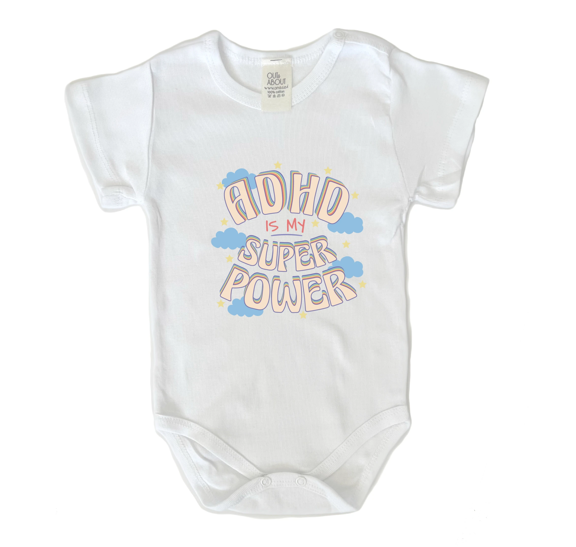 בגד גוף בצבע לבן מיוצר בישראל 100% כותנה רכה ואיכותית איור אישה צבעונית עם רקע וורדים