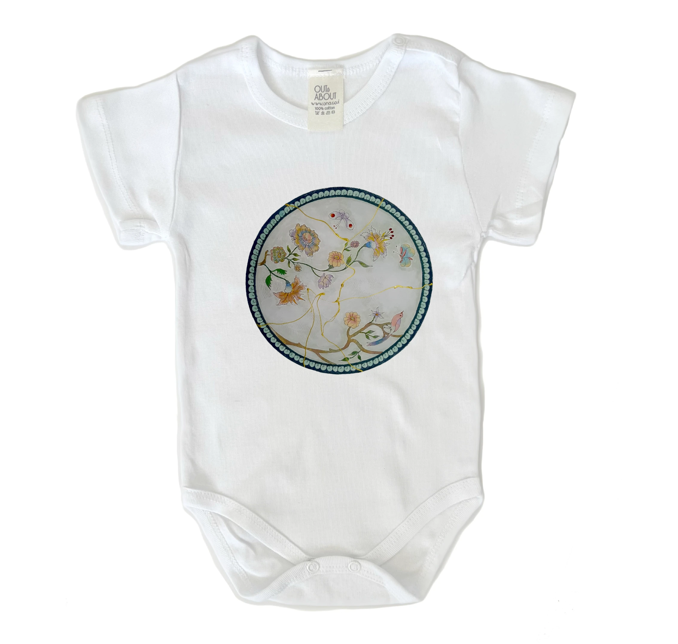בגד גוף בצבע לבן מיוצר בישראל 100% כותנה רכה ואיכותית איור אישה של נומי אוהד מלול