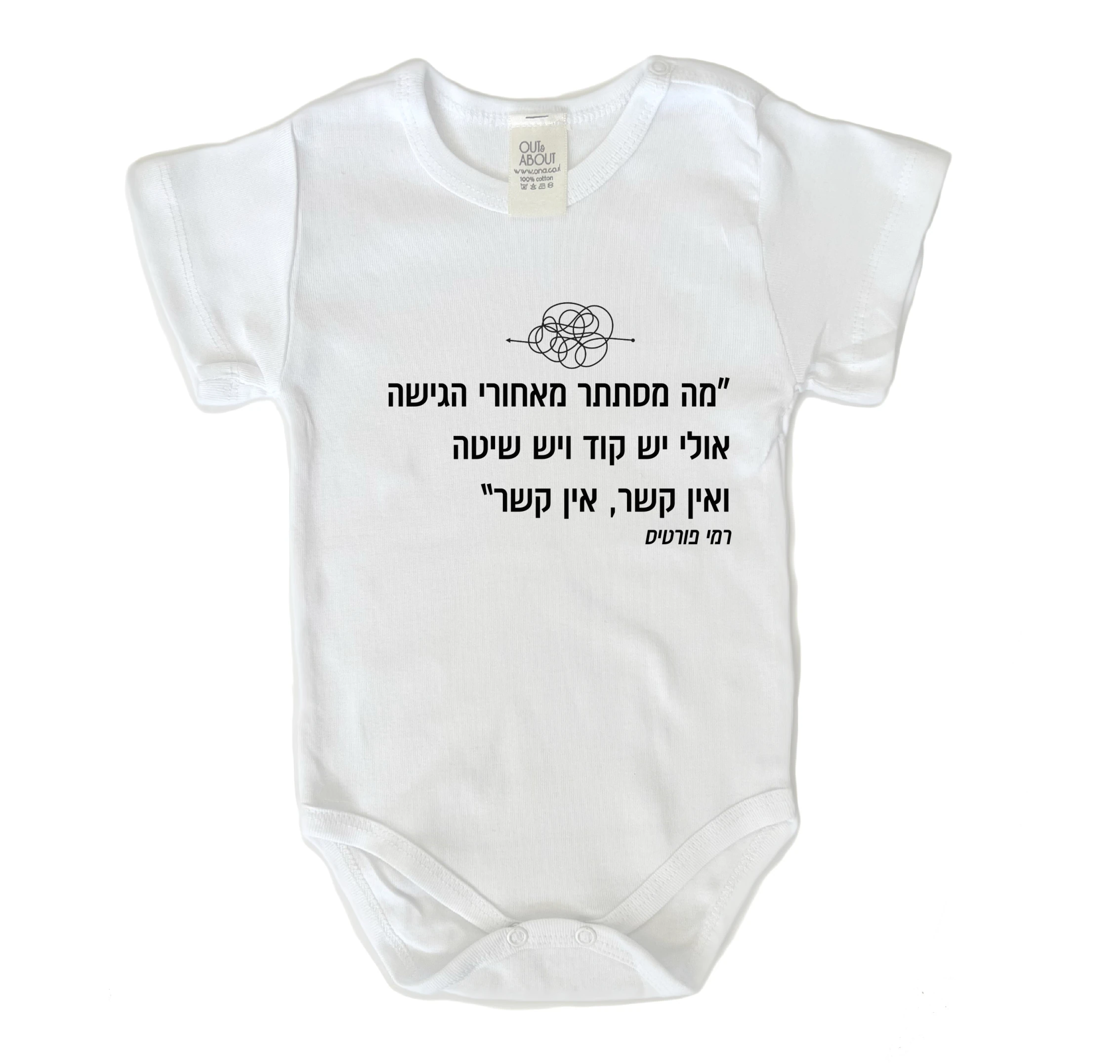 בגד גוף בצבע לבן מיוצר בישראל 100% כותנה רכה ואיכותית גלריית אקום- בכל הזמנה נעביר תמלוגים לאומנים: ציטוט מתוך השיר : בוקר ציח וצח נונו