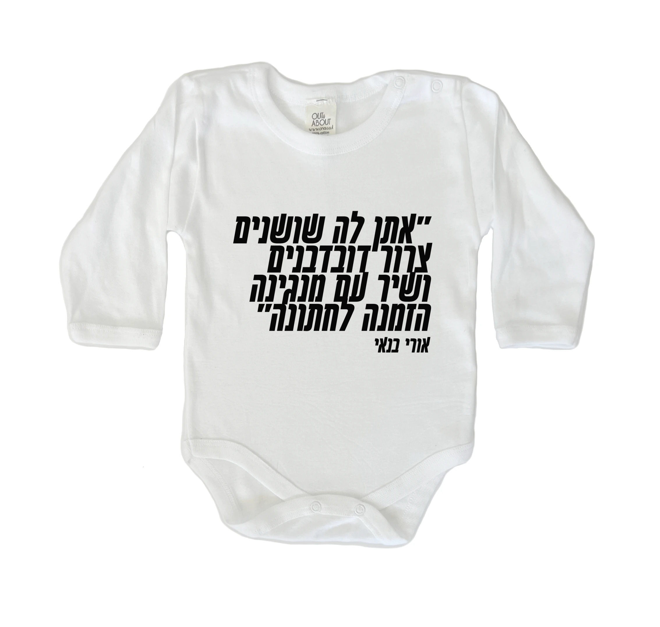 בגד גוף בצבע לבן מיוצר בישראל 100% כותנה רכה ואיכותית הלוואי ביצוע בועז שרעבי מילים אהוד מנור. ציטוט משיר ישראלי ברישיון תמלוגים של אקום