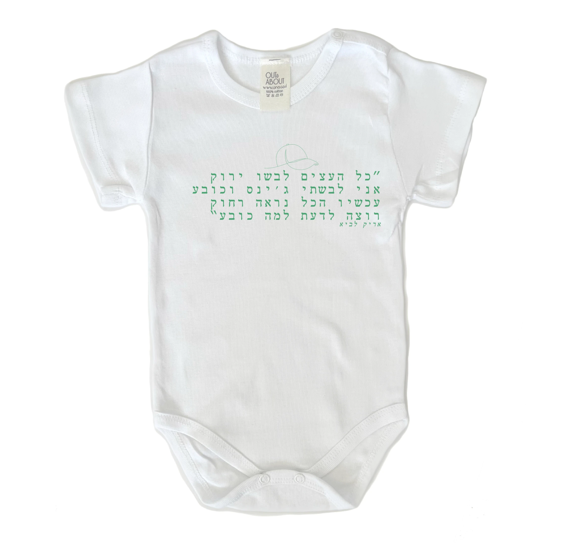בגד גוף בצבע לבן מיוצר בישראל 100% כותנה רכה ואיכותית ציטוט משיר ישראלי ברישיון תמלוגים של אקום: לראות את האור אסף אמדורסקי , פלדמן ברק אפרת גוש