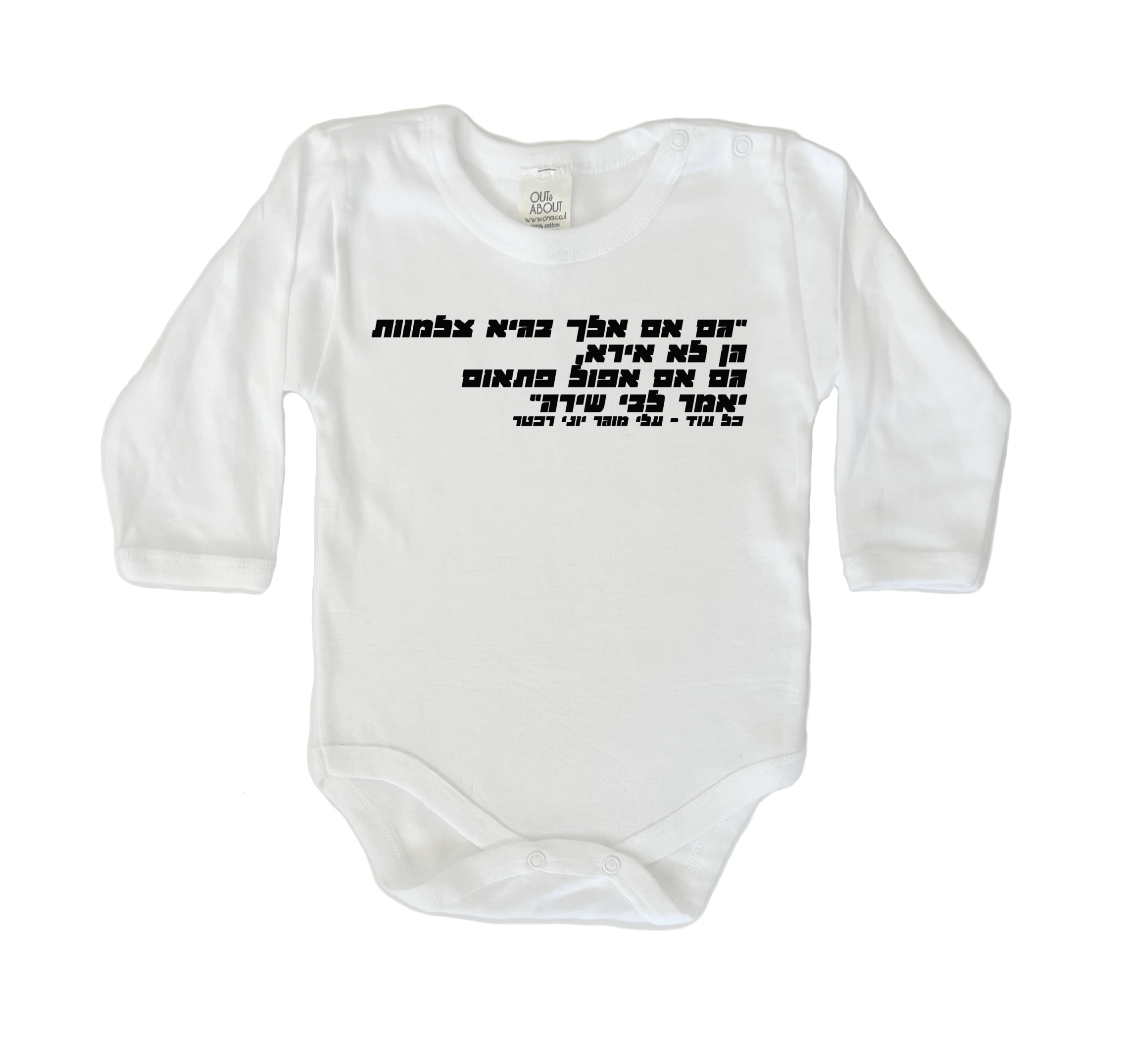 בגד גוף בצבע לבן מיוצר בישראל 100% כותנה רכה ואיכותית ציטוט משיר ישראלי ברישיון תמלוגים של אקום: מה שאת אוהבת גלי עטרי, מאיר גולדברג ויצחק קלפטר