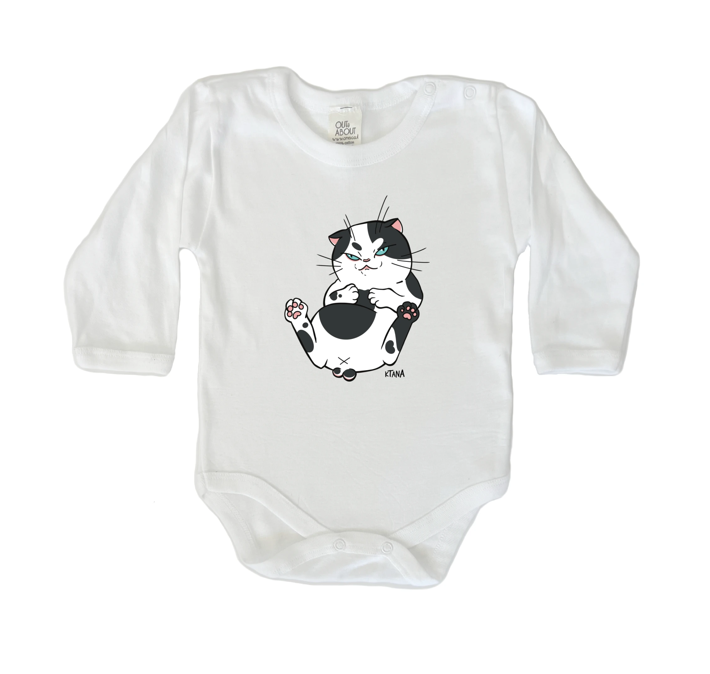 בגד גוף בצבע לבן מיוצר בישראל 100% כותנה רכה ואיכותית נמר עם ראש לב :איורי נמרים של עדי קטנה טאטו