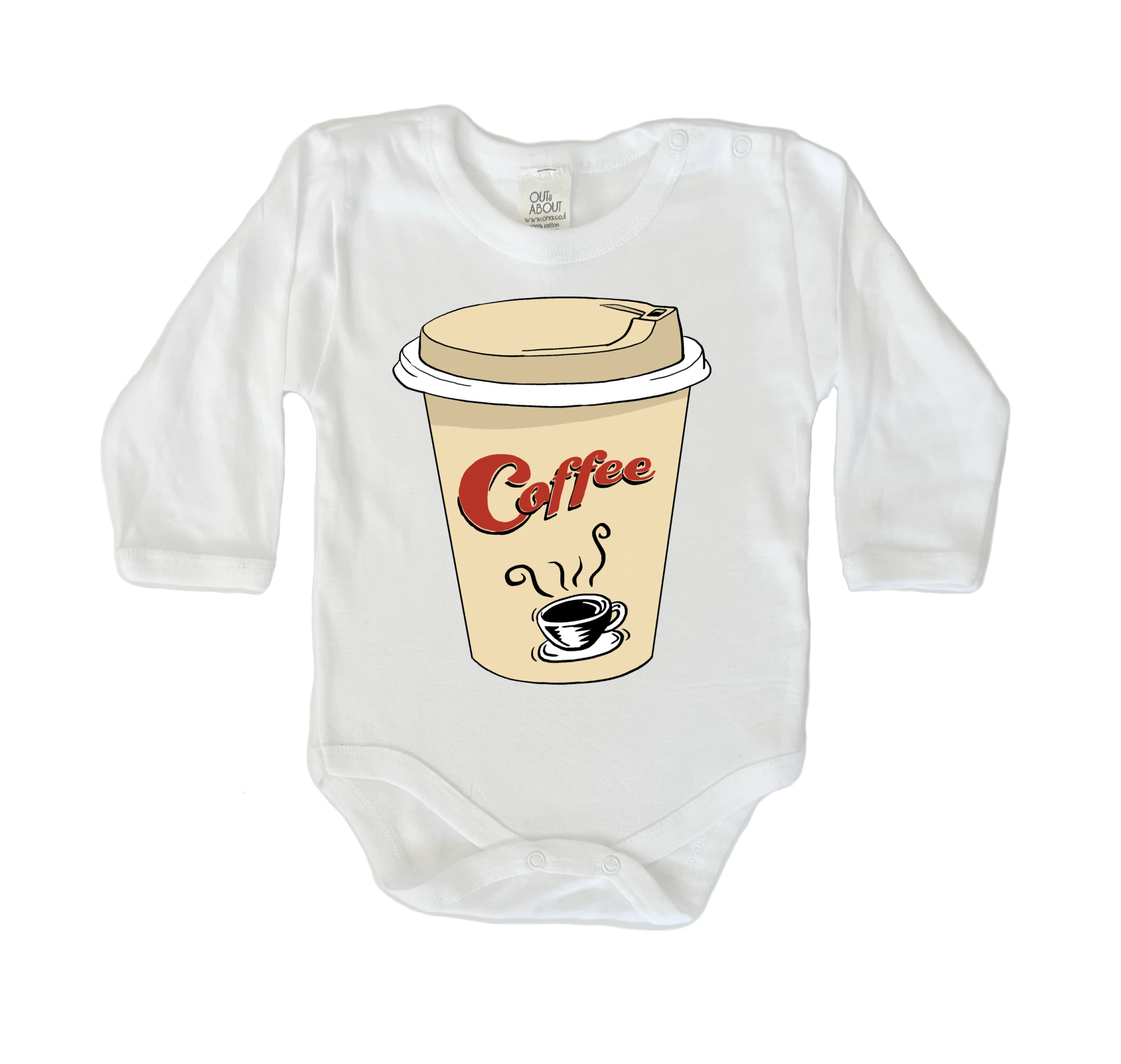 בגד גוף בצבע לבן מיוצר בישראל 100% כותנה רכה ואיכותית ציור בסגנון פופ ארט / קומיקס של אלית אבני שרון: תינוק עם קעקוע אמא