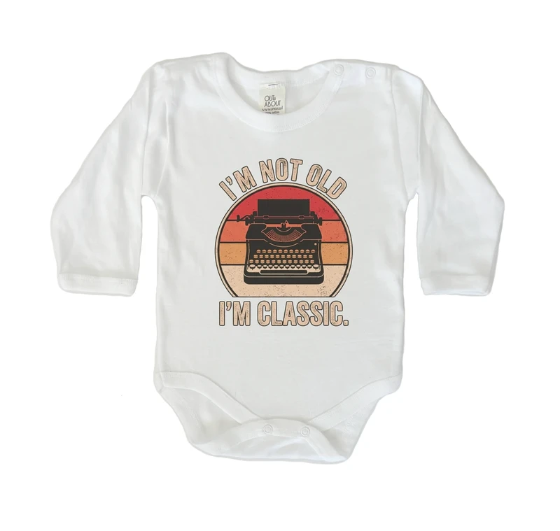 תקליט ויניל עם כיתוב לא ישן קלאסי בסגנון רטרו בגד גוף בצבע לבן מיוצר בישראל 100% כותנה רכה ואיכותית