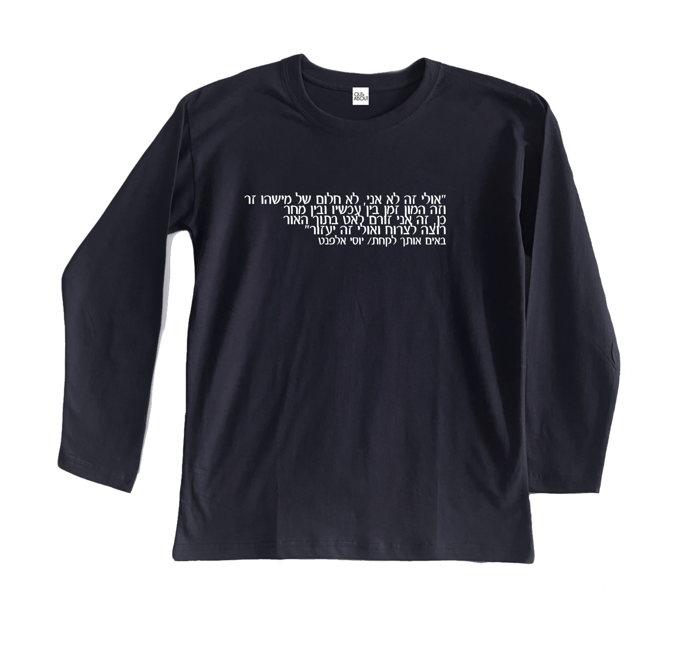 חולצה ארוכה אילנה גור בעיצוב אישי היא חולצה ארוכה מודפסת עם הדפס ייחודי בהשראת יהדות, ים וציור. מתאימה למי שמחפשים חולצה מודפסת עם אופי, מתנה מקורית או פריט לבוש עם אמירה אישית.