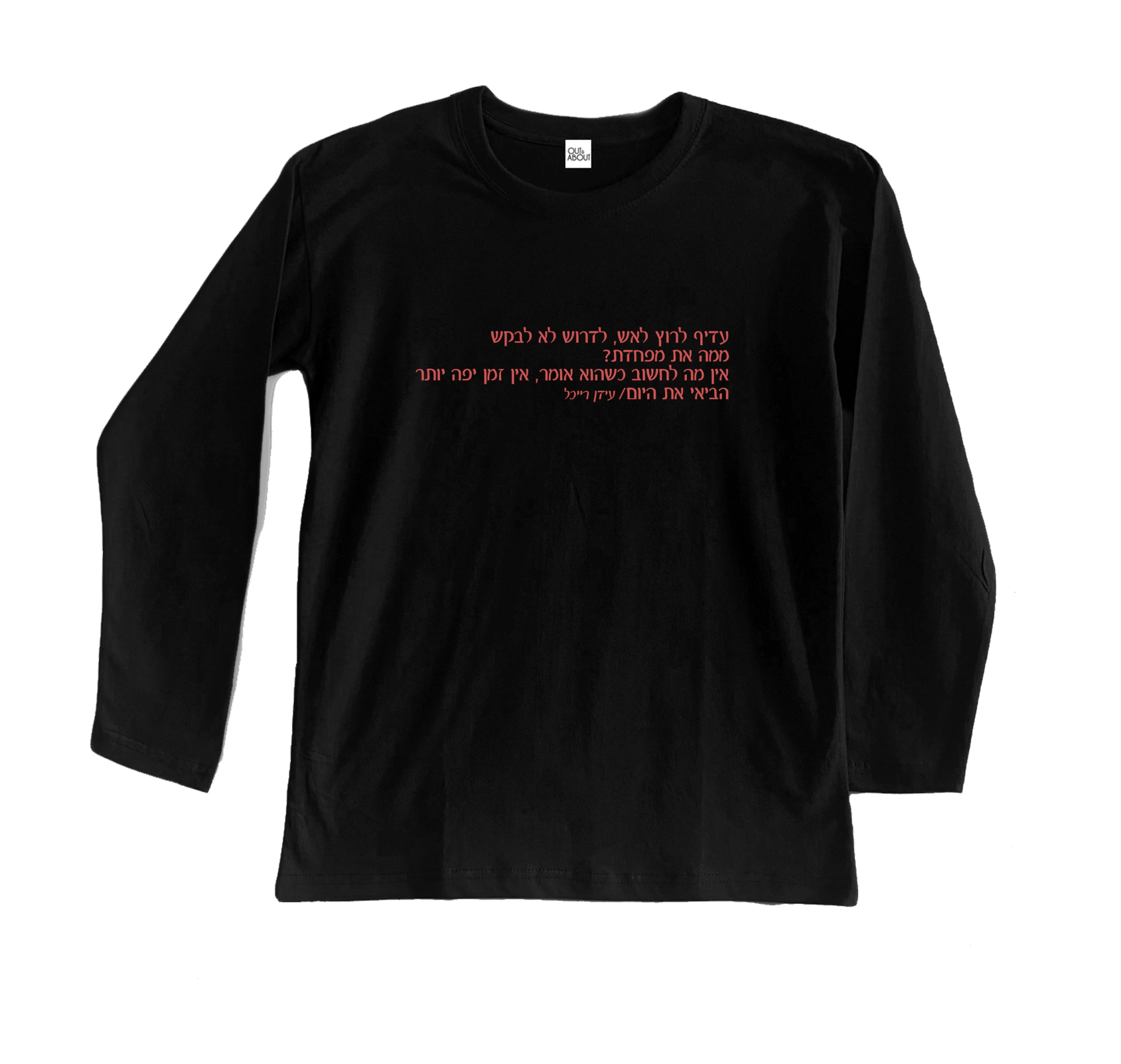 חולצת בייסיק ארוך 100% כותנה ציטוט משיר ישראלי ברישיון תמלוגים של אקום: ארבע לפנות בוקר, יהודית רביץ וגלעד קריב