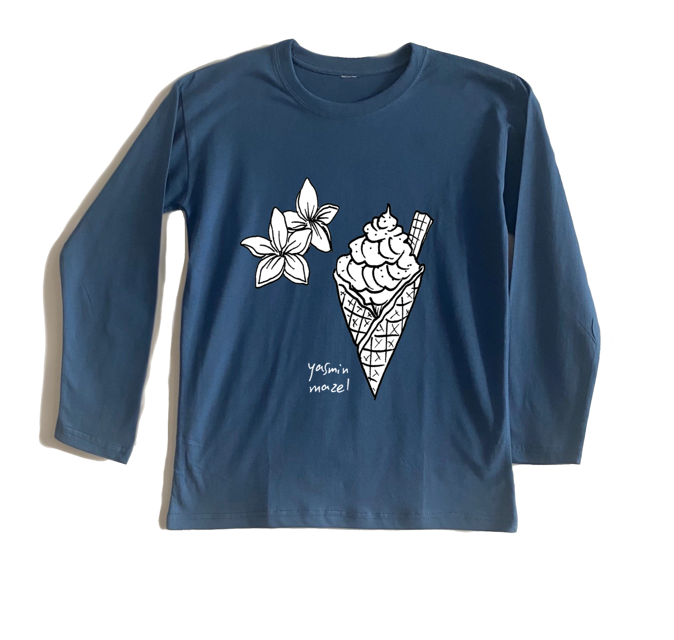 חולצת בייסיק ארוך 100% כותנה הדפס של המאיירת יסמין מזל : ארמון בחוף ים