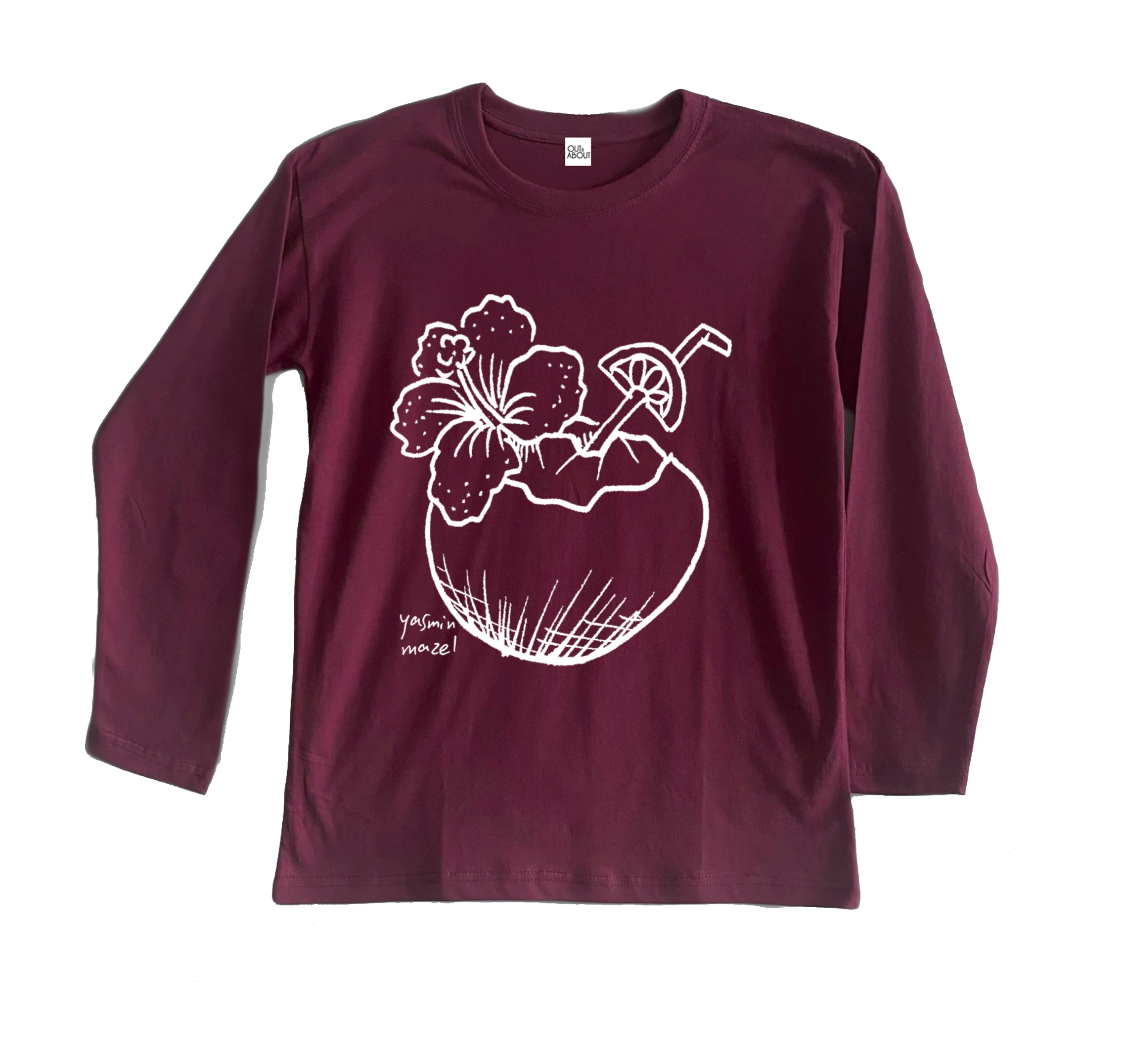 חולצת בייסיק ארוך 100% כותנה הדפס של המאיירת יסמין מזל : גלידה ופרח מגנוליה
