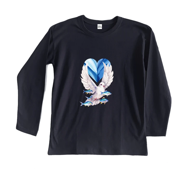 דינוזאור מגנן בגיטארה חולצת בייסיק ארוך 100% כותנה, חולצה ארוכה מבד נעים ומתאים למזג האוויר הישראלי.