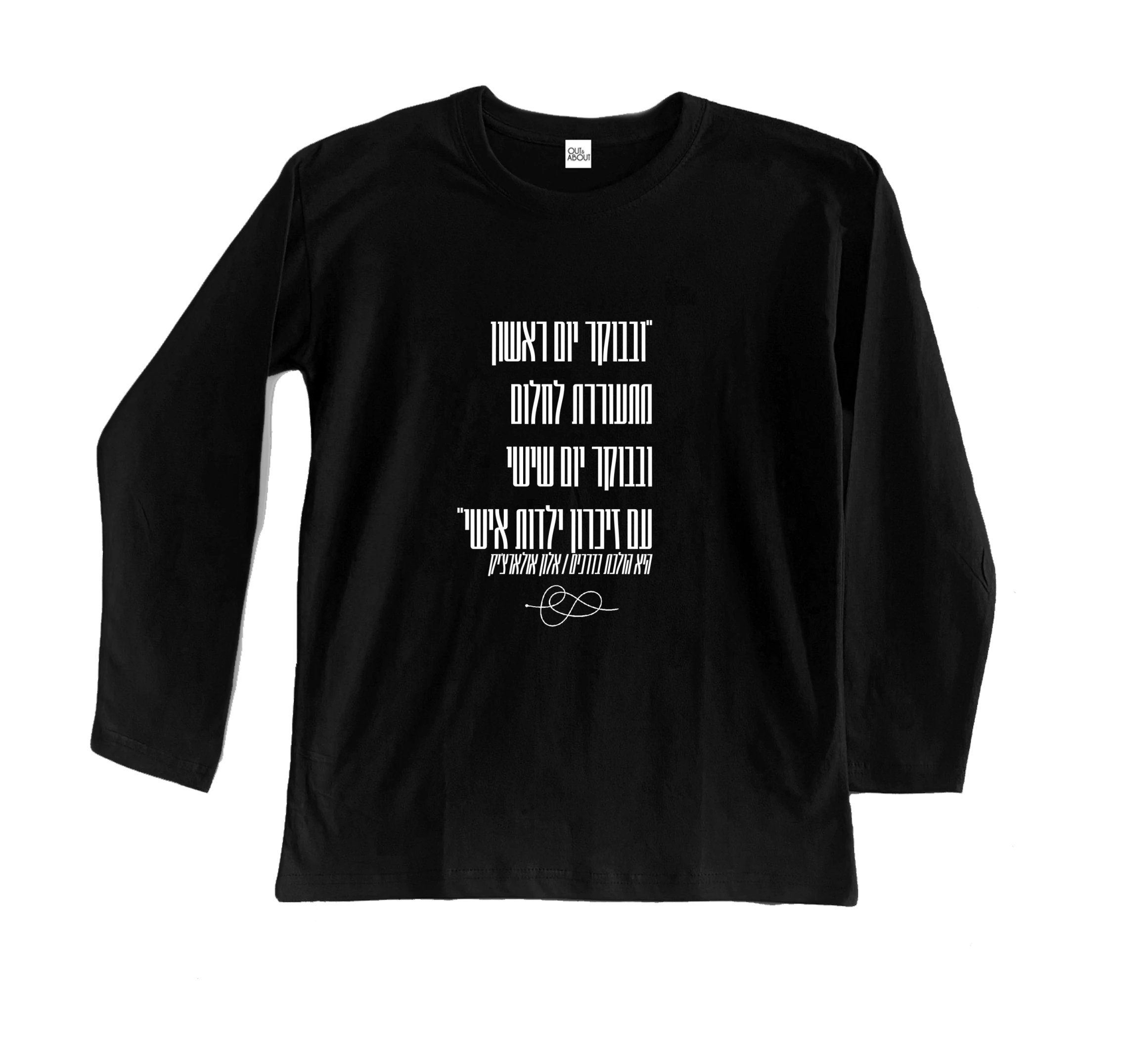 חולצת בייסיק ארוך 100% כותנה ציטוט משיר ישראלי ברישיון תמלוגים של אקום: הביאי את היום, עידן רייכל