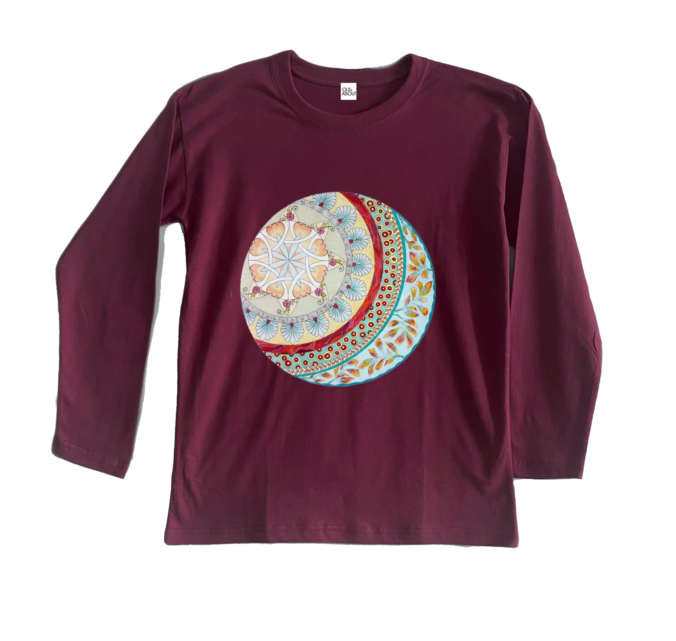 חולצת בייסיק ארוך 100% כותנה מנדלה בתוך עיגול מלא עם מסגרת