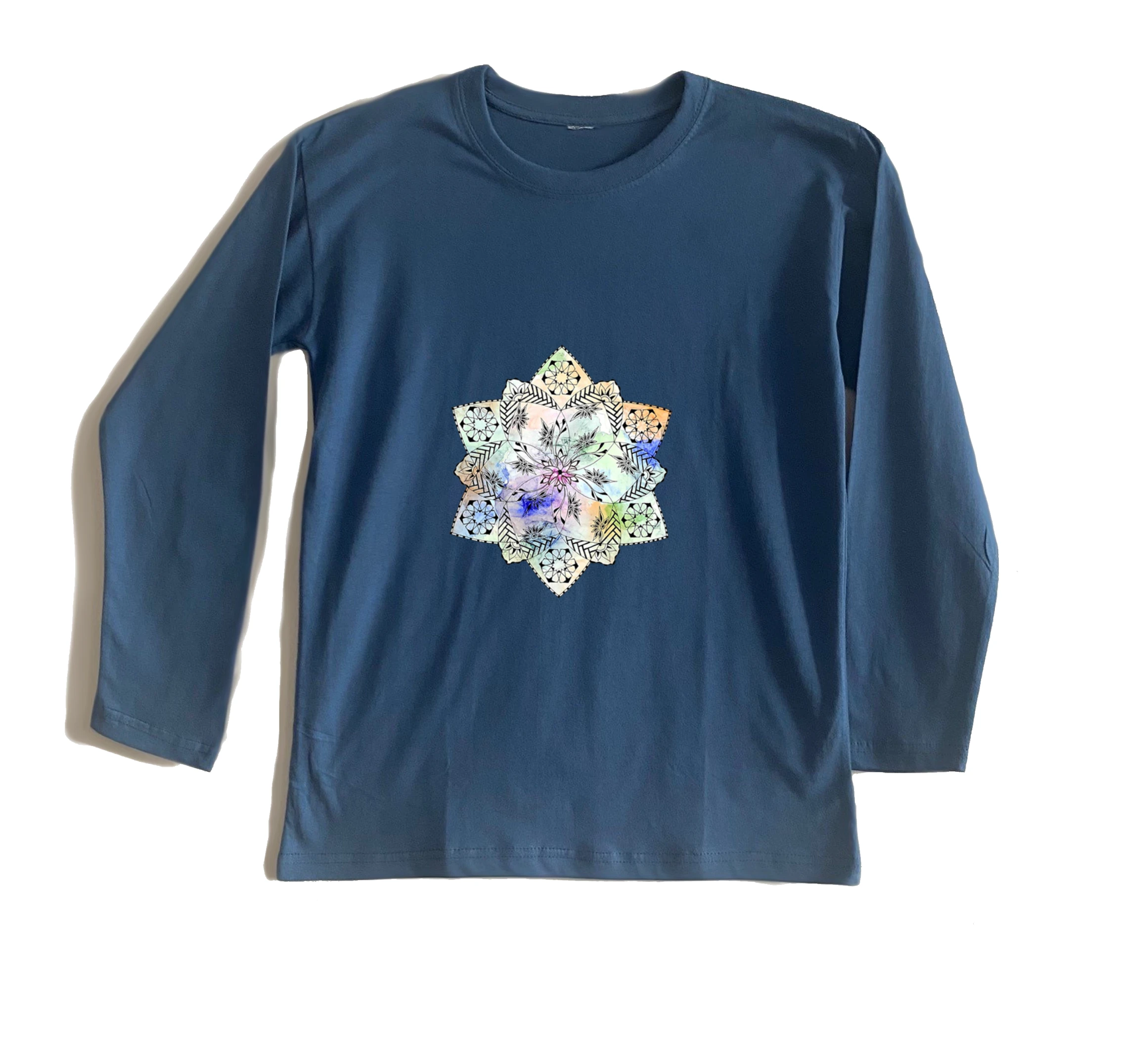 חולצה ארוכה מנדלת כוכבים בעיצוב אישי היא חולצה ארוכה מודפסת עם הדפס ייחודי בהשראת ים ופרחים. מתאימה למי שמחפשים חולצה מודפסת עם אופי, מתנה מקורית או פריט לבוש עם אמירה אישית.
