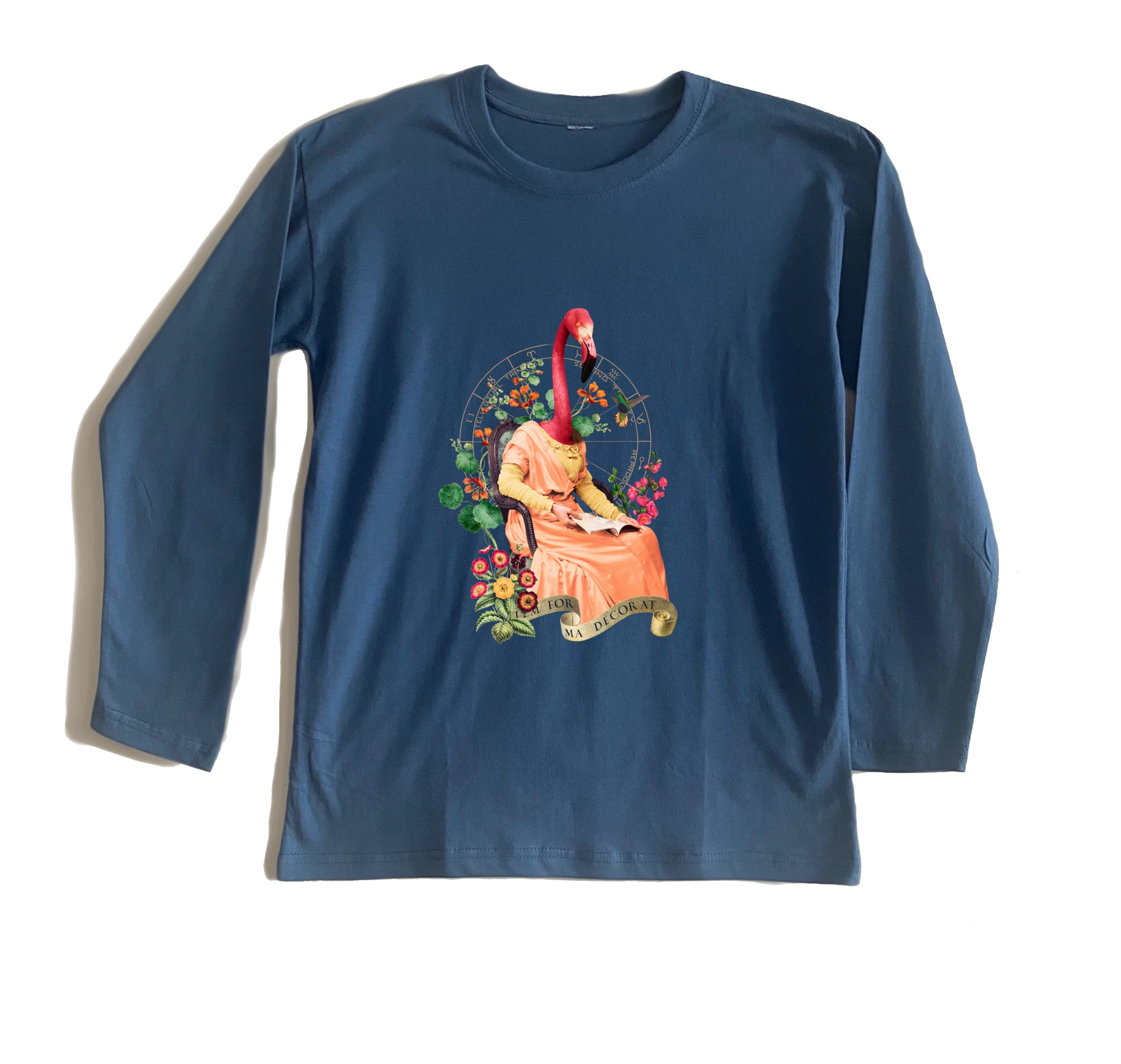 חולצת בייסיק ארוך 100% כותנה הדפס סוריאליסטי של צבאים בירח דבש