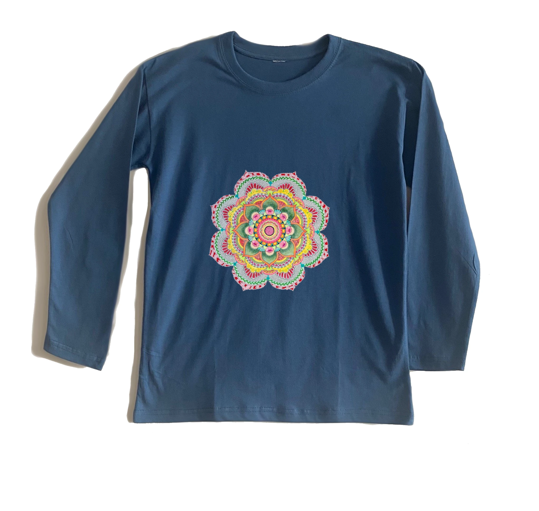 חולצת בייסיק ארוך 100% כותנה מנדלה צבועה בצבעי מים