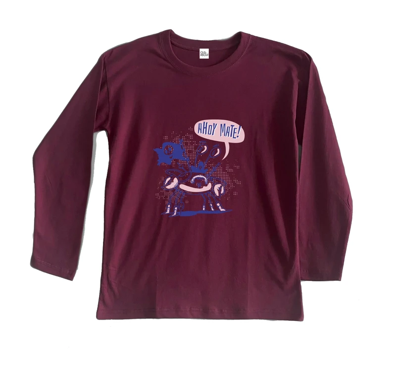 דמות של פיראט אומר האווי חולצת בייסיק ארוך 100% כותנה, חולצה ארוכה מבד נעים ומתאים למזג האוויר הישראלי.