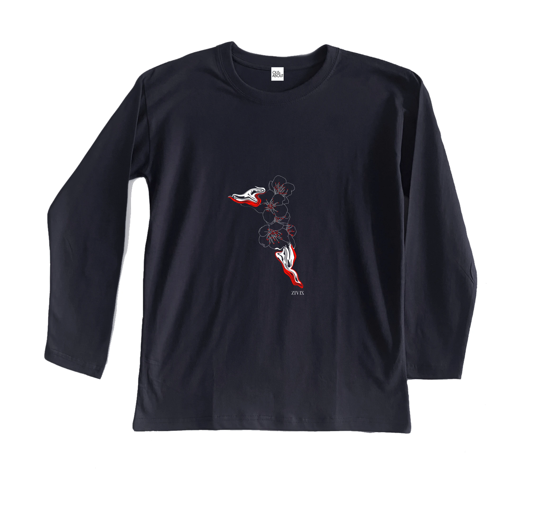 חולצת בייסיק ארוך 100% כותנה קנקן בסגנון יפני במסגרת של המקעקעת זיו שגיא