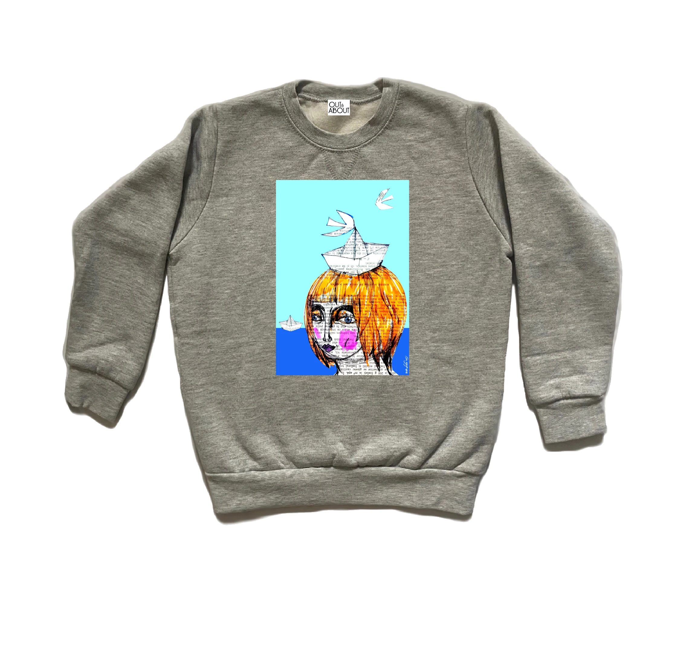 בייסיק טי קצרה מבד 100% כותנה איור אישה צבעונית על רקע בועות בצהוב של נומי אוהד מלול
