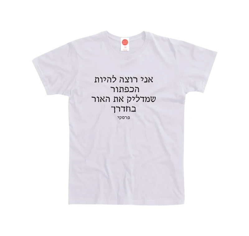 ציטוט מתוך השיר כמה פעמים ספרת עד עשר מילים ולחן רפי פרסקי בייסיק טי קצרה מבד 100% כותנה, חולצה קצרה מבד נעים ואיכותי מתאים לאקלים הארץ ישראלי.