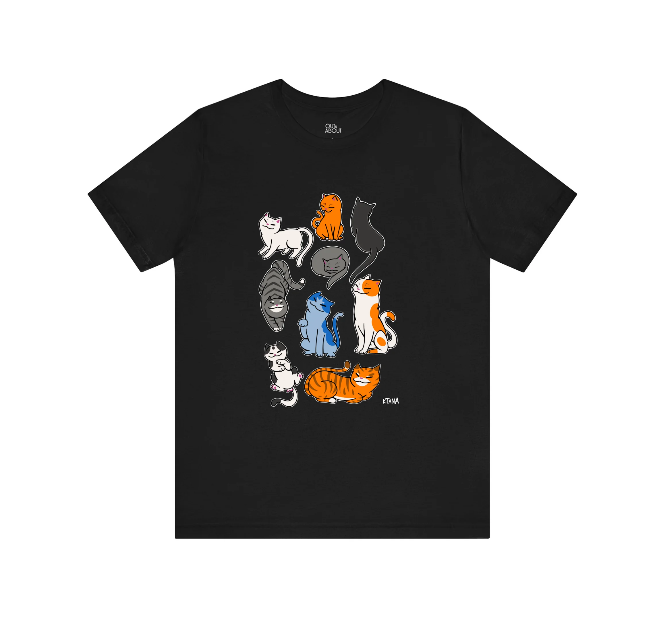 בייסיק טי קצרה מבד 100% כותנה ראמן גאומטרי חתולים