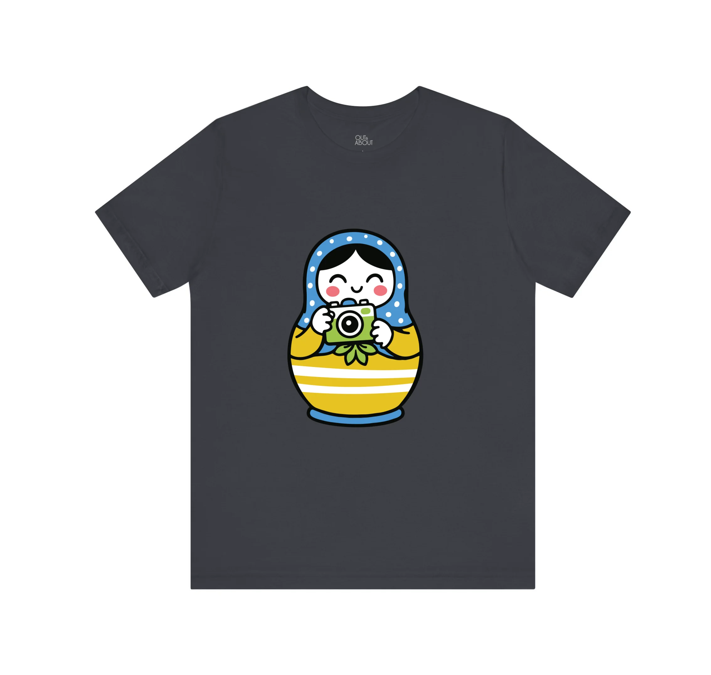 בייסיק טי בבושקה חייכי למצלמה - אפור כהה, M