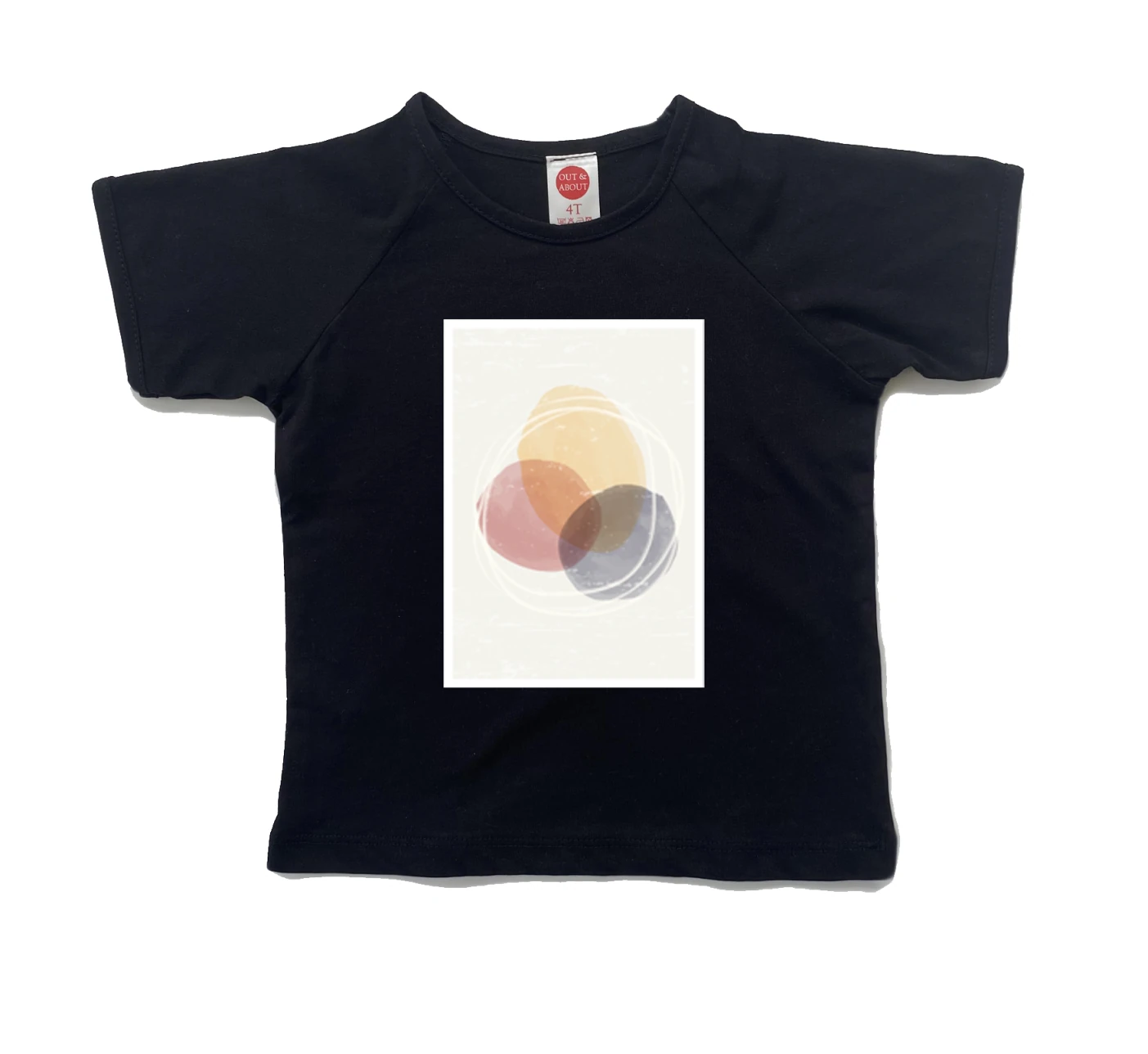 חולצת ילדים 100% כותנה, מיוצר ונתפר בישראל. גזרת רגלן למראה משודרג ציור אבסטרקטי מודרני