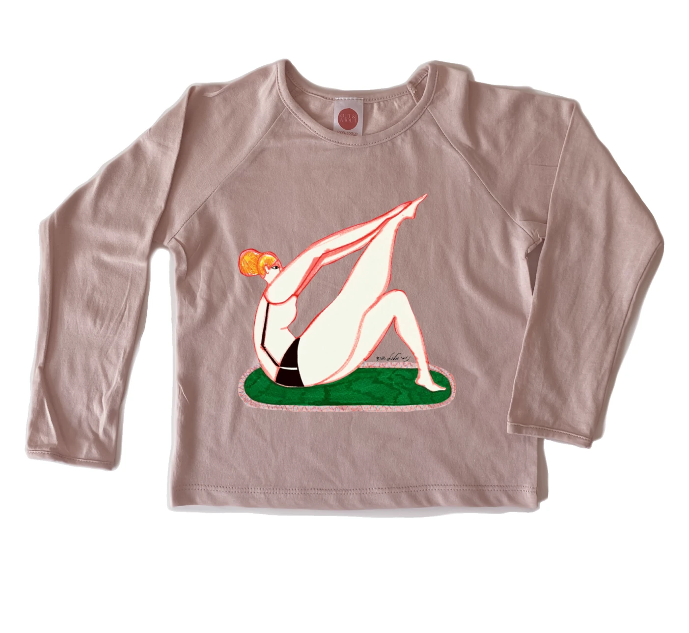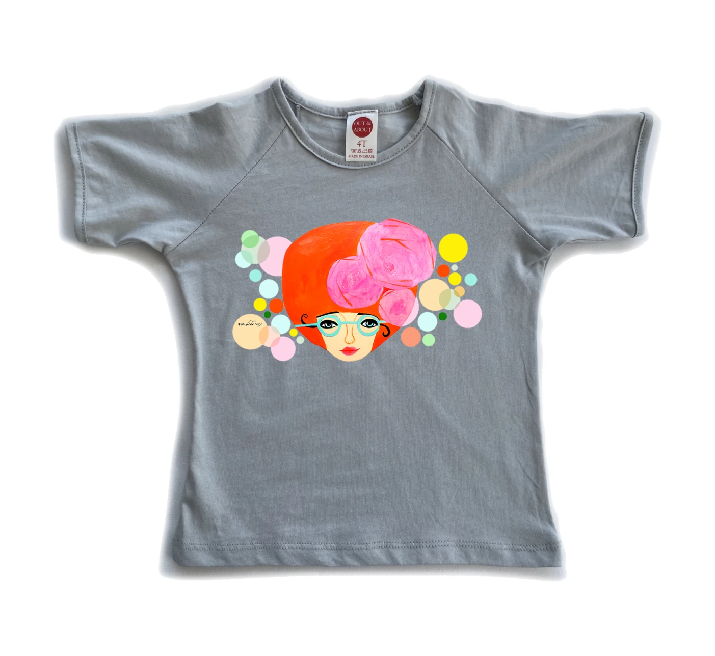 חולצת ילדים 100% כותנה, מיוצר ונתפר בישראל. גזרת רגלן למראה משודרג איור אישה מחזיקה פרח של נומי אוהד מלול