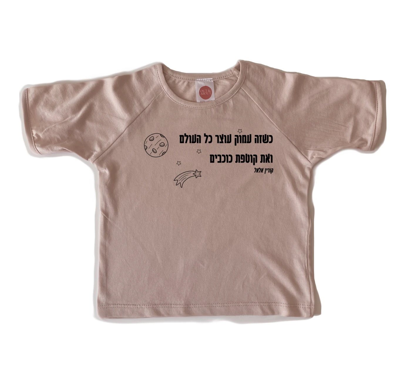 חולצת ילדים 100% כותנה, מיוצר ונתפר בישראל. גזרת רגלן למראה משודרג גלריית אקום- בכל הזמנה נעביר תמלוגים לאומנים: ציטוט מתוך השיר : בוקר ציח וצח נונו