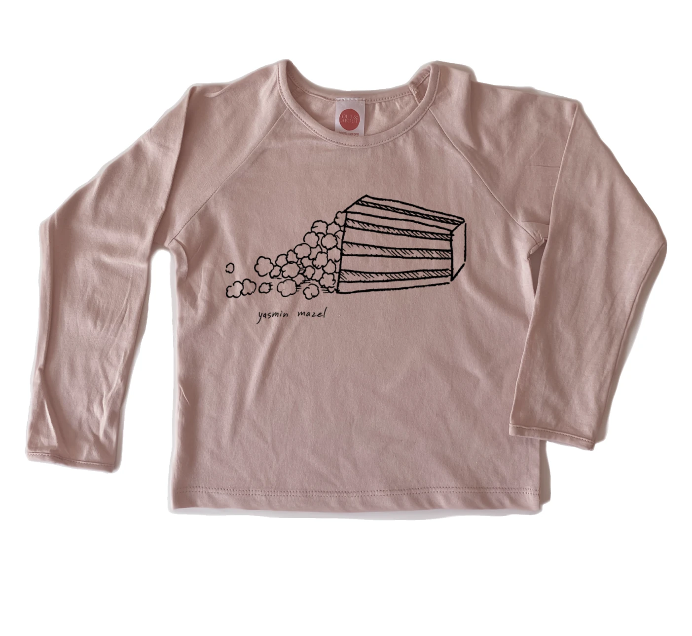 חולצת ילדים 100% כותנה, מיוצר ונתפר בישראל. גזרת רגלן למראה משודרג איור אלמנטים מעולם הגינה בוקר של יסמין מזל