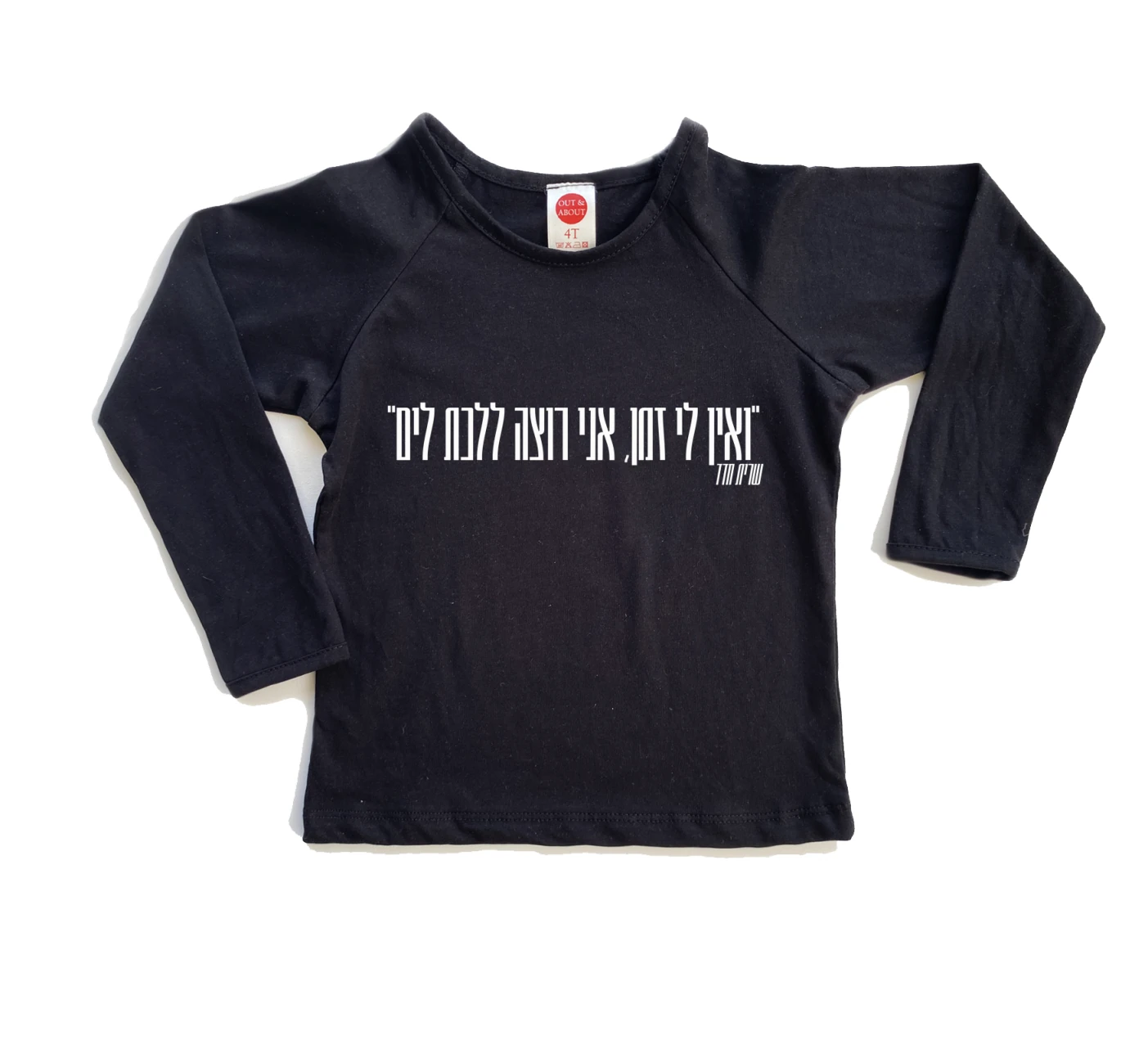 חולצת ילדים 100% כותנה, מיוצר ונתפר בישראל. גזרת רגלן למראה משודרג ציטוט משיר ישראלי ברישיון תמלוגים של אקום: דמיון חופשי יצחק קלפטר