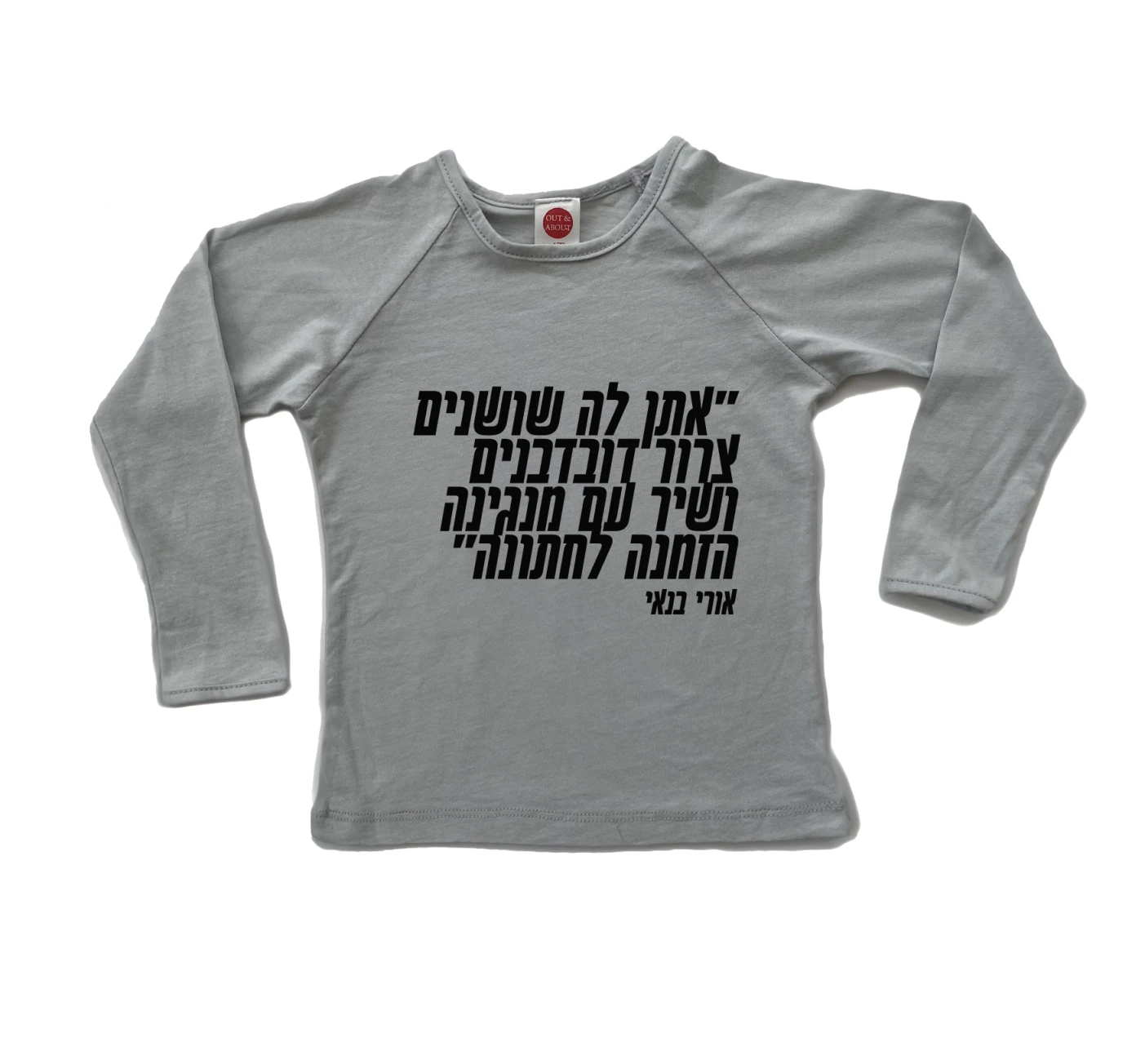 חולצת ילדים 100% כותנה, מיוצר ונתפר בישראל. גזרת רגלן למראה משודרג הלוואי ביצוע בועז שרעבי מילים אהוד מנור. ציטוט משיר ישראלי ברישיון תמלוגים של אקום