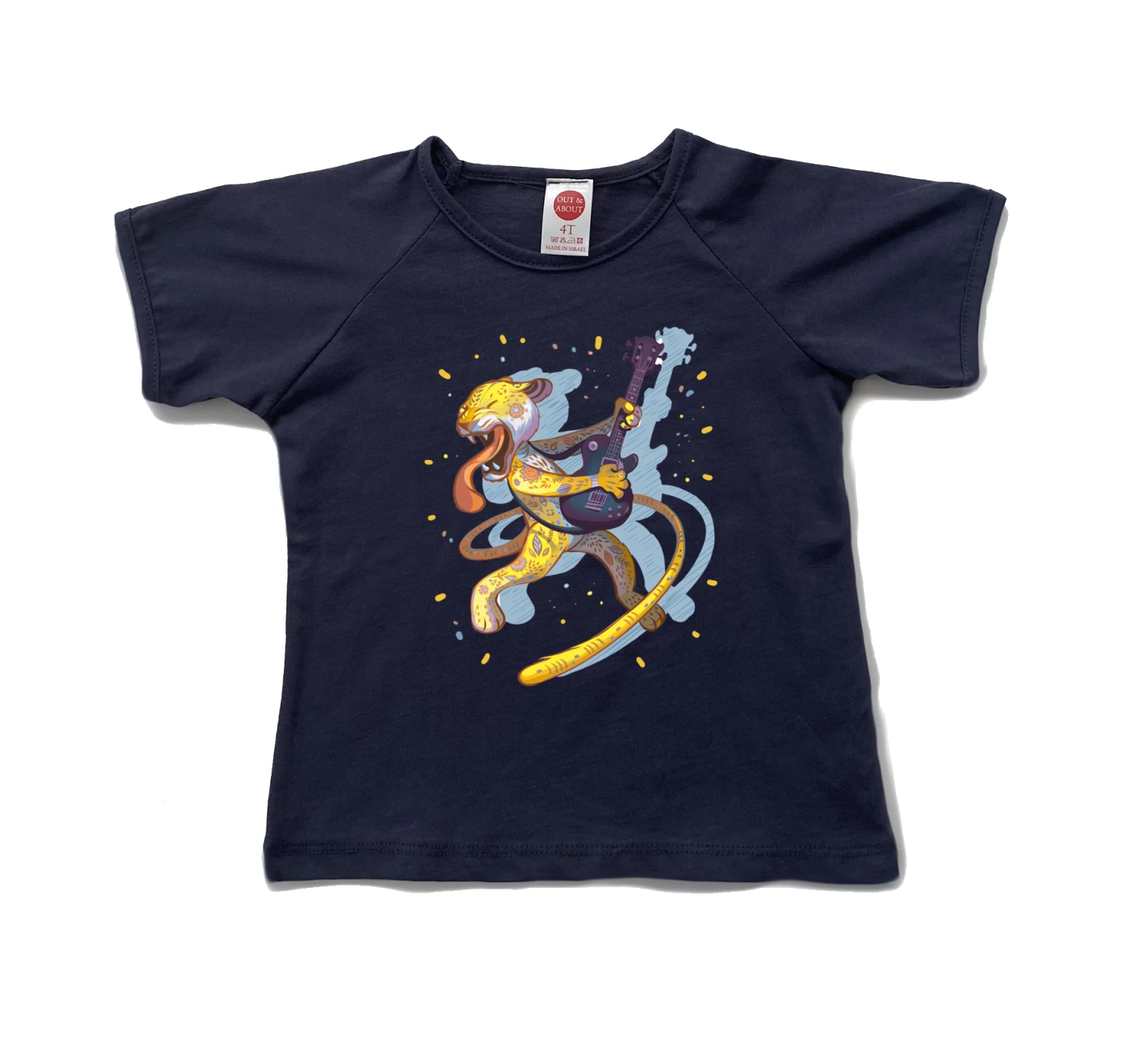 חולצת ילדים 100% כותנה, מיוצר ונתפר בישראל. גזרת רגלן למראה משודרג חתול בגלישת גלים בים