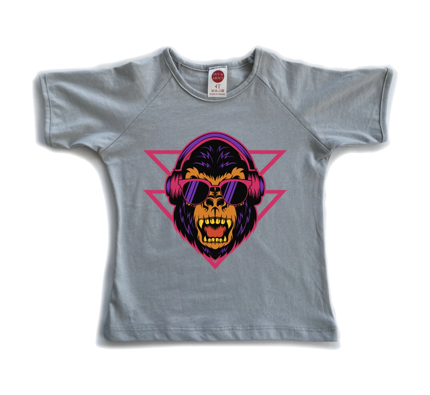 חולצת ילדים 100% כותנה, מיוצר ונתפר בישראל. גזרת רגלן למראה משודרג חתול עם משקפי שמש