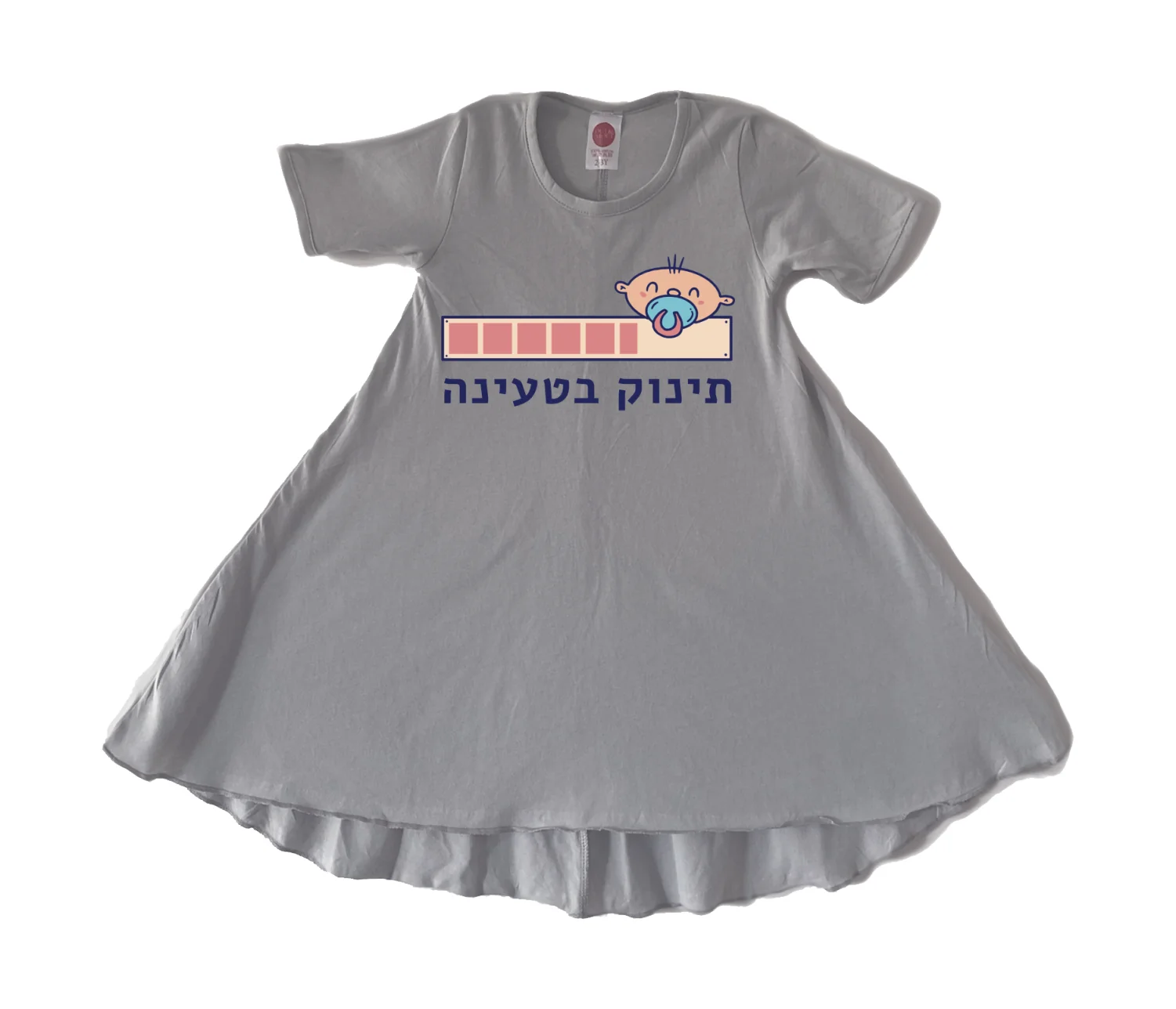 טוען תינוק (חמוד) חולצת ילדים 100% כותנה, מיוצר ונתפר בישראל. גזרת רגלן למראה משודרג