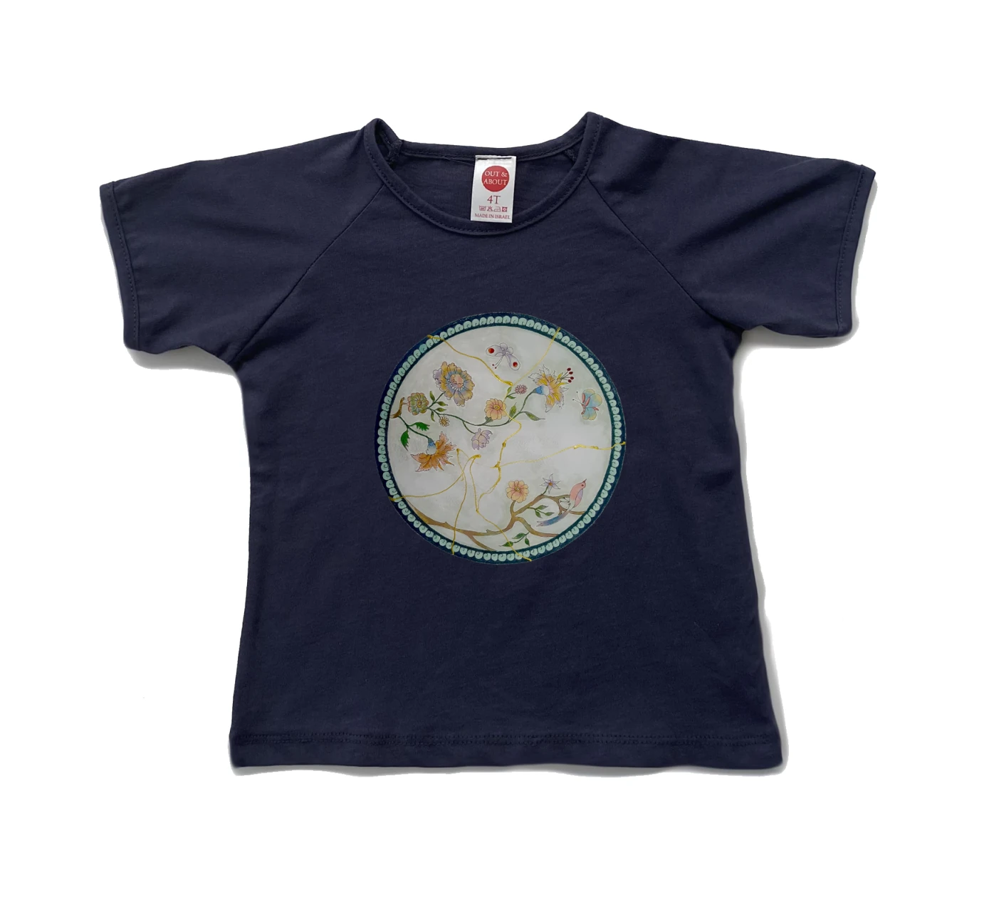 חולצת ילדים 100% כותנה, מיוצר ונתפר בישראל. גזרת רגלן למראה משודרג מנדלה עגולה עם שבילי צבע