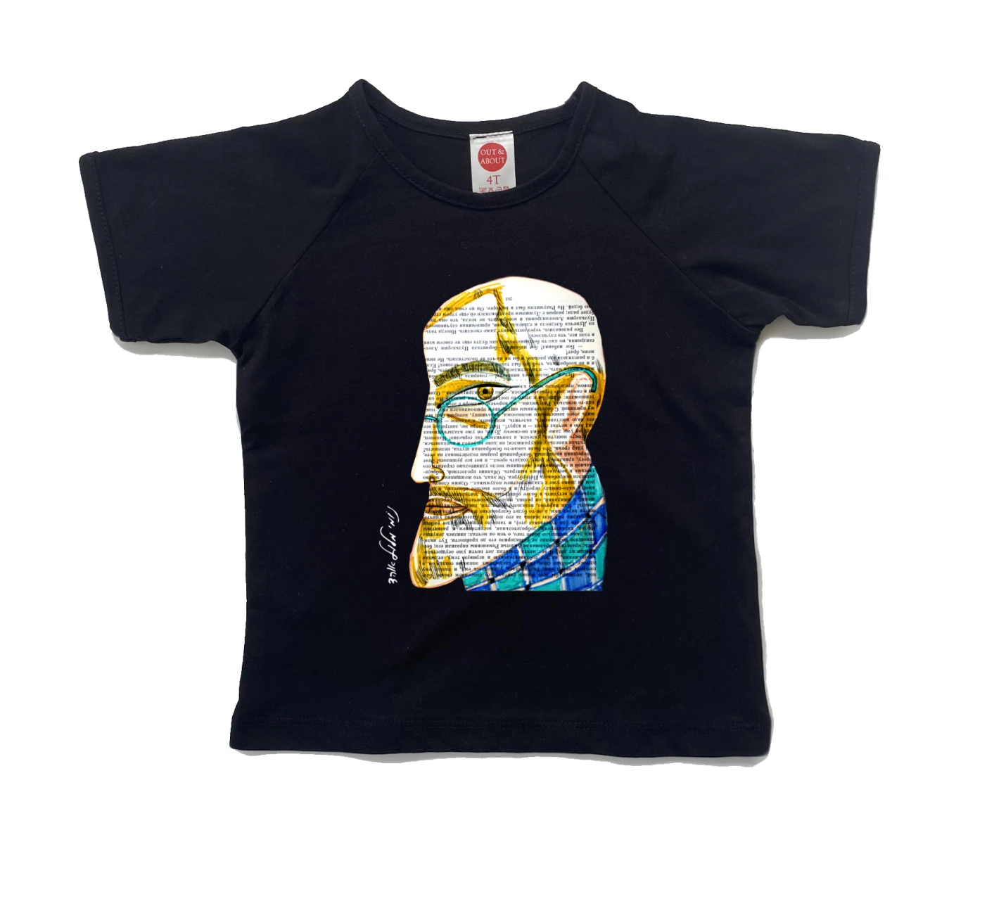 חולצת ילדים 100% כותנה, מיוצר ונתפר בישראל. גזרת רגלן למראה משודרג איור נערה עם כובע סירת נייר של נומי אוהד מלול