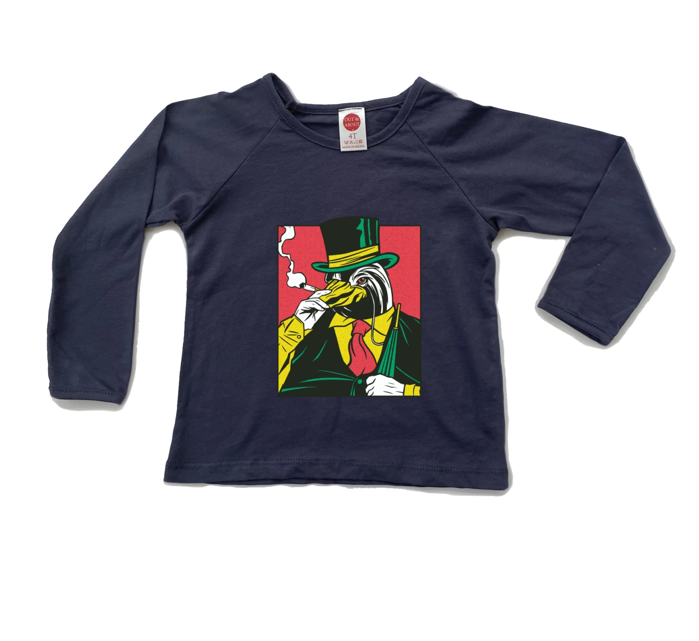 חולצת ילדים 100% כותנה, מיוצר ונתפר בישראל. גזרת רגלן למראה משודרג פינגווין בחולצת הוואי שותה קוקטייל