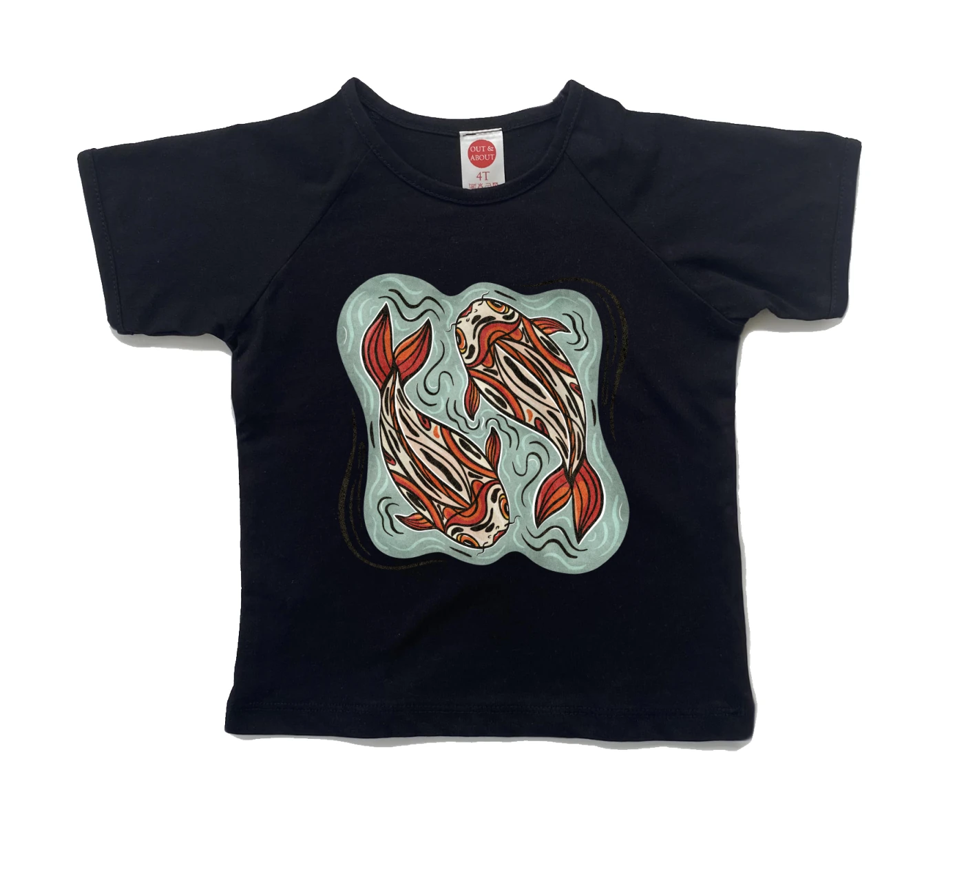 חולצת ילדים 100% כותנה, מיוצר ונתפר בישראל. גזרת רגלן למראה משודרג הדפס של סטודיו וקטו: צפרדע מתוך פרח