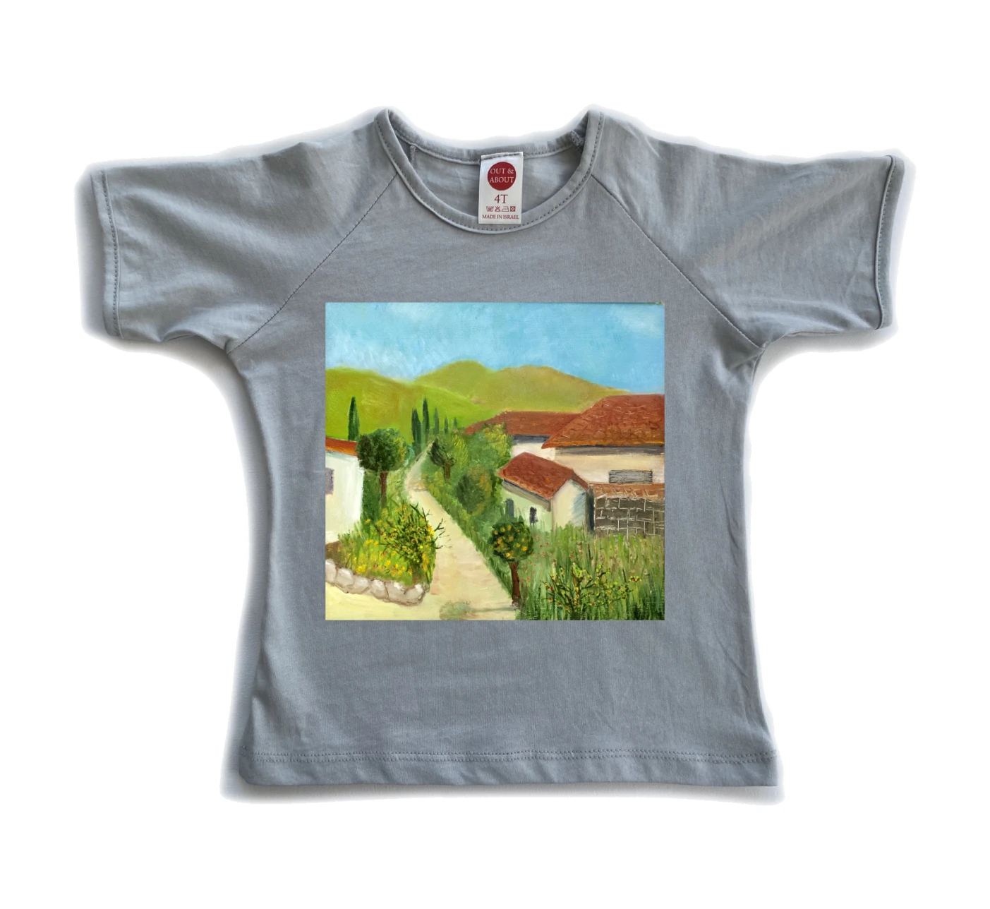 חולצת ילדים 100% כותנה, מיוצר ונתפר בישראל. גזרת רגלן למראה משודרג ציור של הציירת קסניה רבזין רחוב ישראלי
