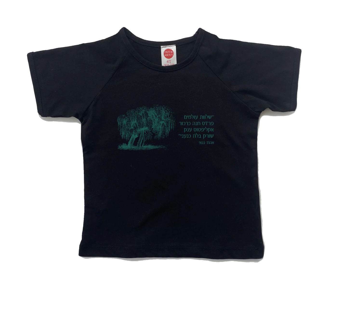 חולצת ילדים 100% כותנה, מיוצר ונתפר בישראל. גזרת רגלן למראה משודרג ציטוט משיר ישראלי ברישיון תמלוגים של אקום:שאריות של החיים עידן רייכל
