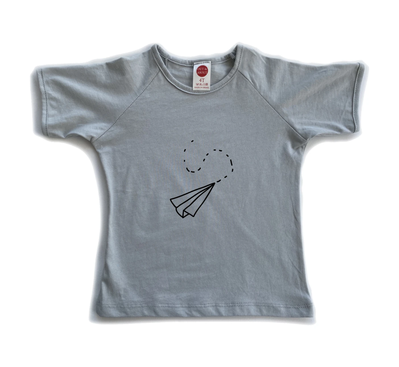 חולצת ילדים 100% כותנה, מיוצר ונתפר בישראל. גזרת רגלן למראה משודרג איור אבסטרקטי בסגנון שנות ה-80