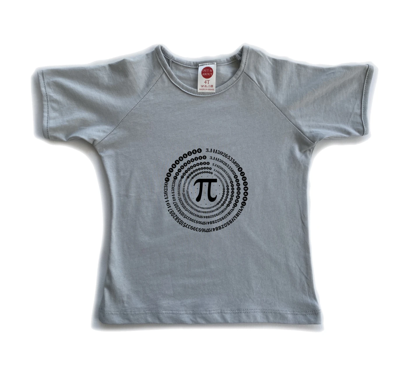 חולצת ילדים 100% כותנה, מיוצר ונתפר בישראל. גזרת רגלן למראה משודרג סמל פאי עם מעגל מספרים צבעוני