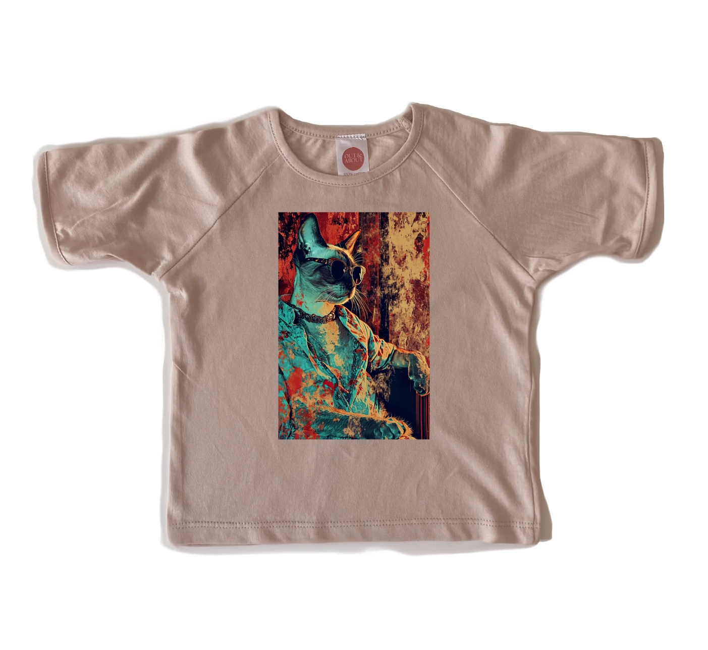 חולצת ילדים 100% כותנה, מיוצר ונתפר בישראל. גזרת רגלן למראה משודרג hipster cat