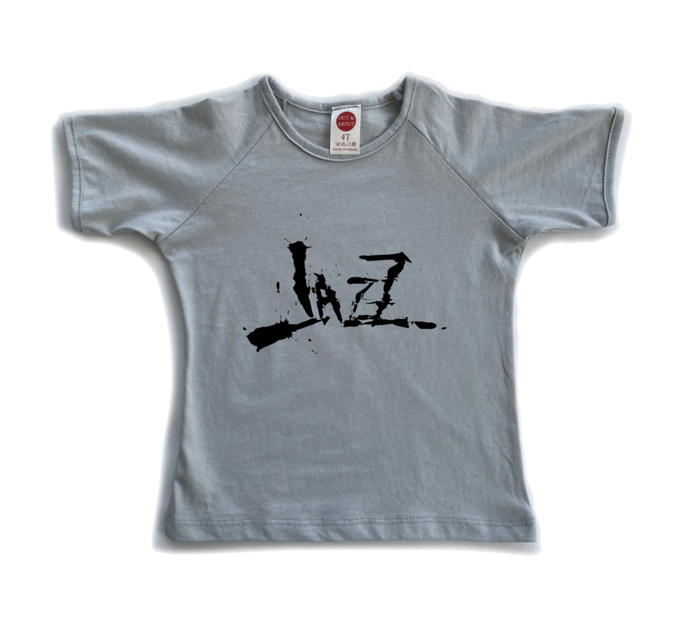 חולצת ילדים 100% כותנה, מיוצר ונתפר בישראל. גזרת רגלן למראה משודרג ציור של הציירת קסניה רבזין ג'אז עם פונט סקסופון