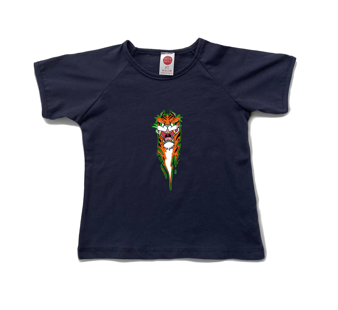 חולצת ילדים 100% כותנה, מיוצר ונתפר בישראל. גזרת רגלן למראה משודרג חתול עצלן :איורי נמרים של עדי קטנה טאטו