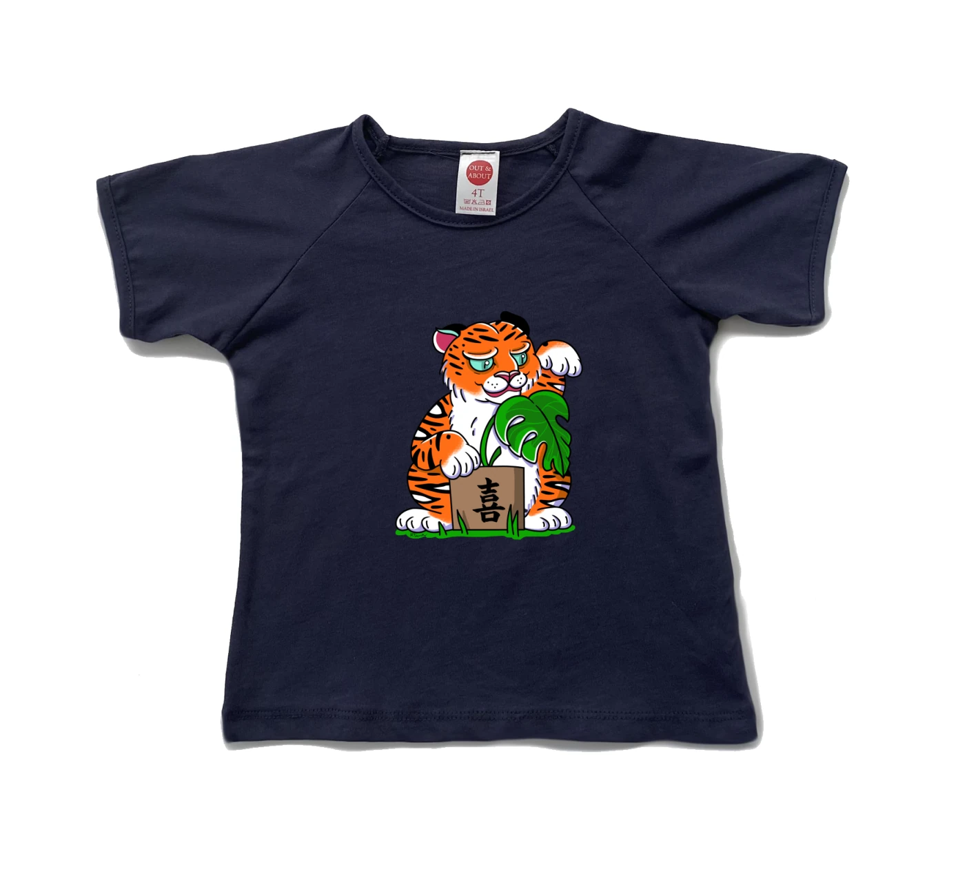 חולצת ילדים 100% כותנה, מיוצר ונתפר בישראל. גזרת רגלן למראה משודרג טיגריס נוזלי :איורי נמרים של עדי קטנה טאטו
